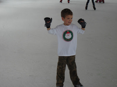 We rode the trolley over the river to the outdoor ice skating rink. This was the first time Lawson and Hudson tried to ice skate. And probably my second time (first time was probably 20 years ago at the Galleria Mall in Dallas.)