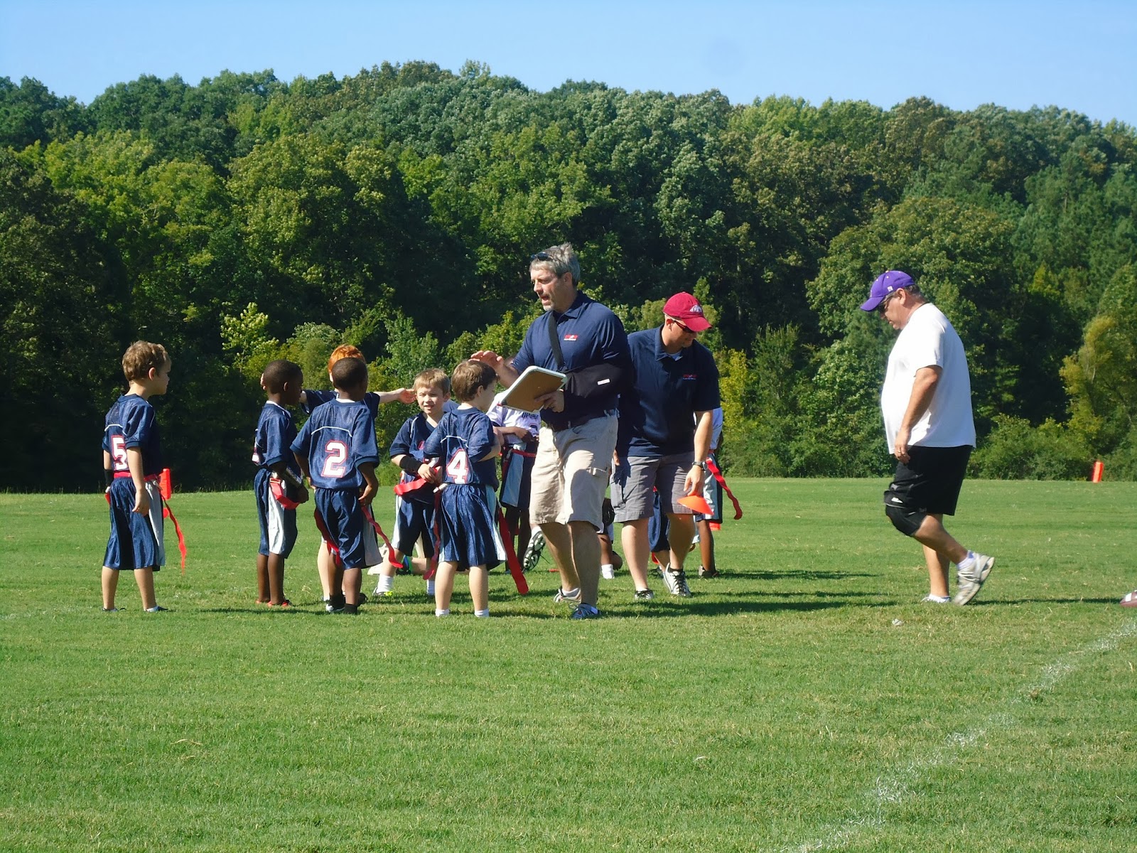 Hudson is playing flag football with Geyer Springs Baptist Upward program. Today, was the first game of the season. Hudson was so excited about getting introduced on the microphone and getting to run through the tunnel. It was pretty cool!